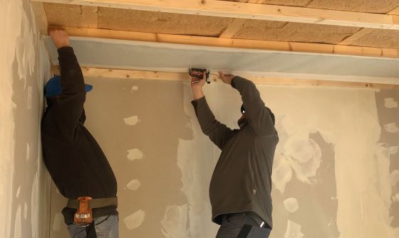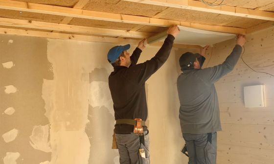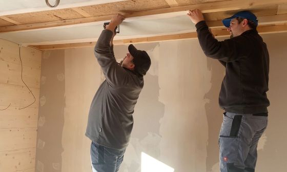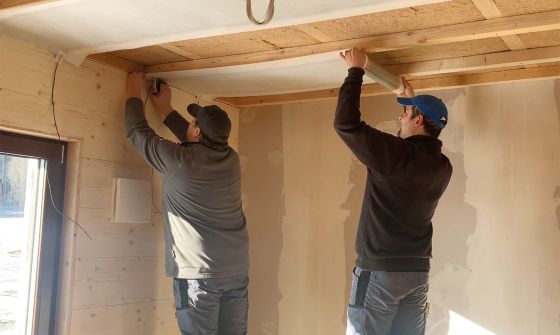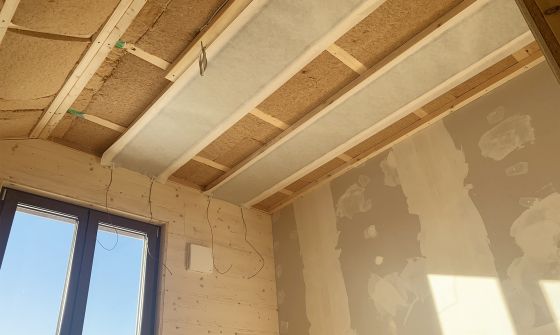 Bei diesem Neubau handelt es sich um ein KfW-Effizienzhaus 40 Plus. Der Bauherr plante, das Haus komplett mit Solarenergie zu beheizen. Neben der elektrischen Fußbodenheizung E-NERGY IQ im Erdgeschoss kam im Dachgeschoss das System E-NERGY CARBON DRYTEC an der Decke zum Einsatz.