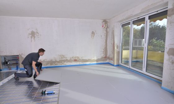 Bei einer Eigentumswohnung in einem Mehrfamilienhaus in Osnabrück wurden Küche, Arbeitszimmer und Wohnzimmer mit Balkon zu einem offenen Wohnbereich umgebaut. Im Zuge dieser Sanierung wurde auch eine Fußbodenheizung über die Gesamtfläche von 55 m² verlegt. Um jedoch keinen allzu großen Höhenunterschied zur restlichen Wohnfläche zu schaffen, wurde das System IDEAL TOP EPS 15 in Verbindung mit CF PRO 12 ausgewählt.